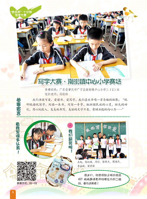 写字是语文学习的重要内容,本栏目是老师组织的十分钟的写字比赛,展示孩子的优秀书法作品,激发孩子写好字的兴趣和信心。欢迎老师带领孩子参加!
