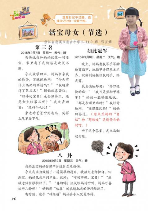 封面明星专属舞台,个人资料、班级合影、家长教育心得,一一亮相。与之相关联的还有《日记串串烧》栏目,选登几篇封面明星的优秀日记,让大家透过文字了解他的成长历程。