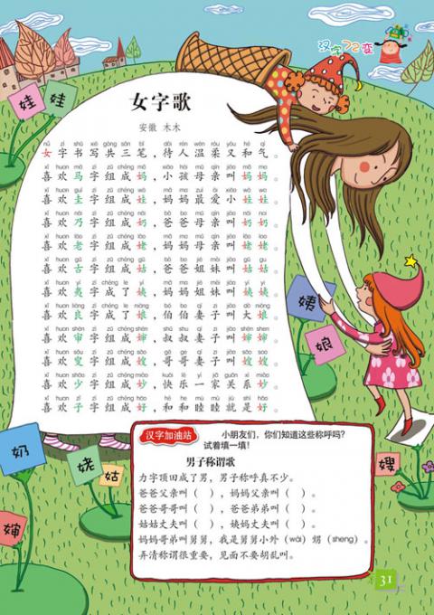 以歌谣的形式,讲述具有相同部首的汉字,辨析形近字。同时,以多种趣味题目,让读者练习汉字。